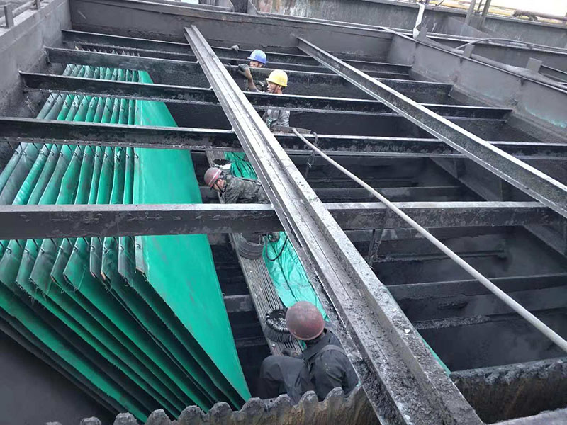 組合式斜板沉淀器有逆流和橫流兩種類型,用戶可以根據(jù)不同情況加以選用。對(duì)于煉鋼廠轉(zhuǎn)爐煙氣凈化污水處理而言,由于污水懸浮物含量高,溫度變化范圍大,為消除因溫度變化而產(chǎn)生的異重流影響,選用橫流組合式斜板沉淀器較為理想。若采用由全自動(dòng)干粉投加絮凝劑裝置(電磁式凝聚器)-斜板沉淀器-螺旋輸泥機(jī)-壓縮空氣提升-脫水機(jī)所組成的新工藝來(lái)處理上述污水,則經(jīng)處理后的污水懸浮物含量可<30-100ml/l,污泥含水率<25~30%,是較為理想的水處理工藝和水處理設(shè)備。